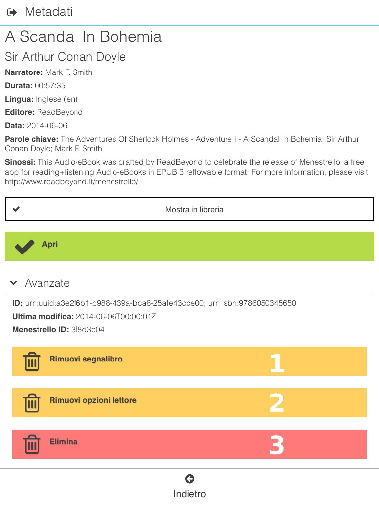 Nota: se l'Audio-eBook non comparisse nella libreria di Menestrello, prova a premere il pulsante Aggiorna nella Vista Libreria dell'app.